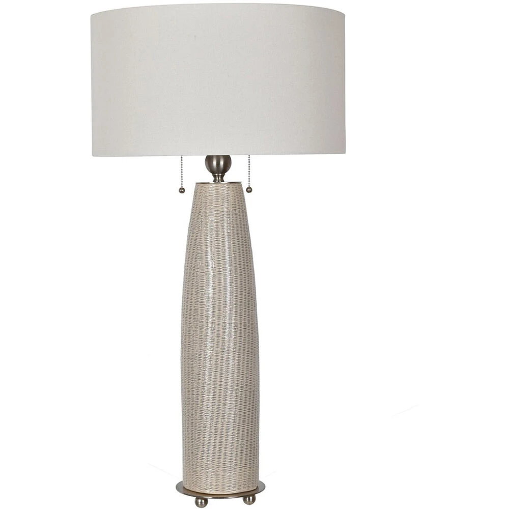 Barclay Table Lamp36″ Ht., Ceramic & MetalCream & Satin Nickel Finish18 x 18 x 10 Off White Linen Shade
