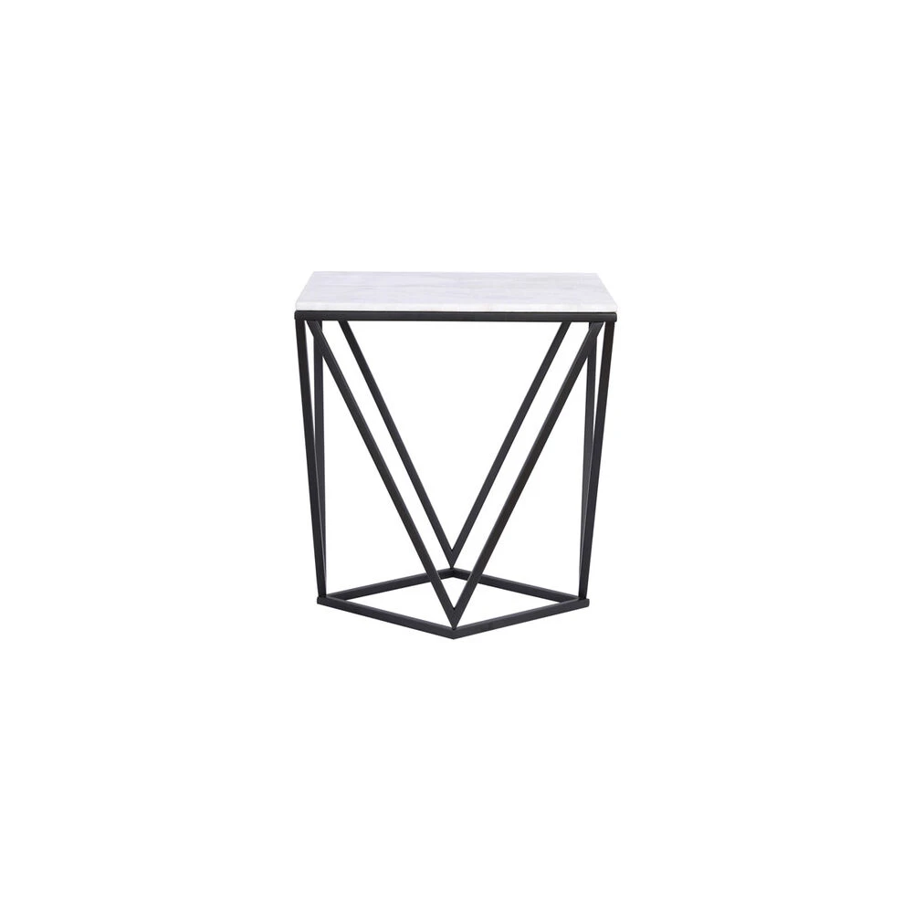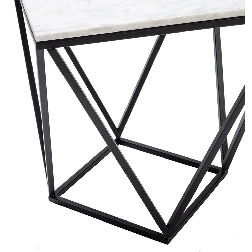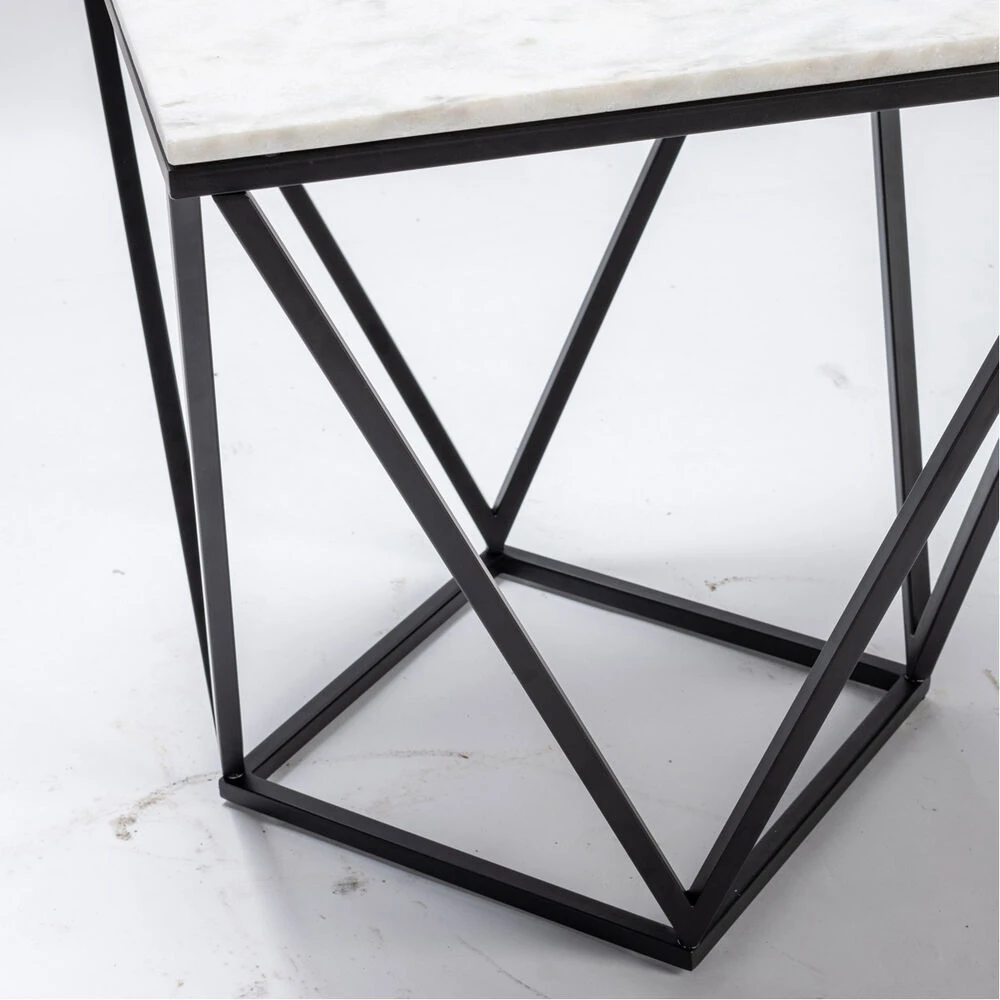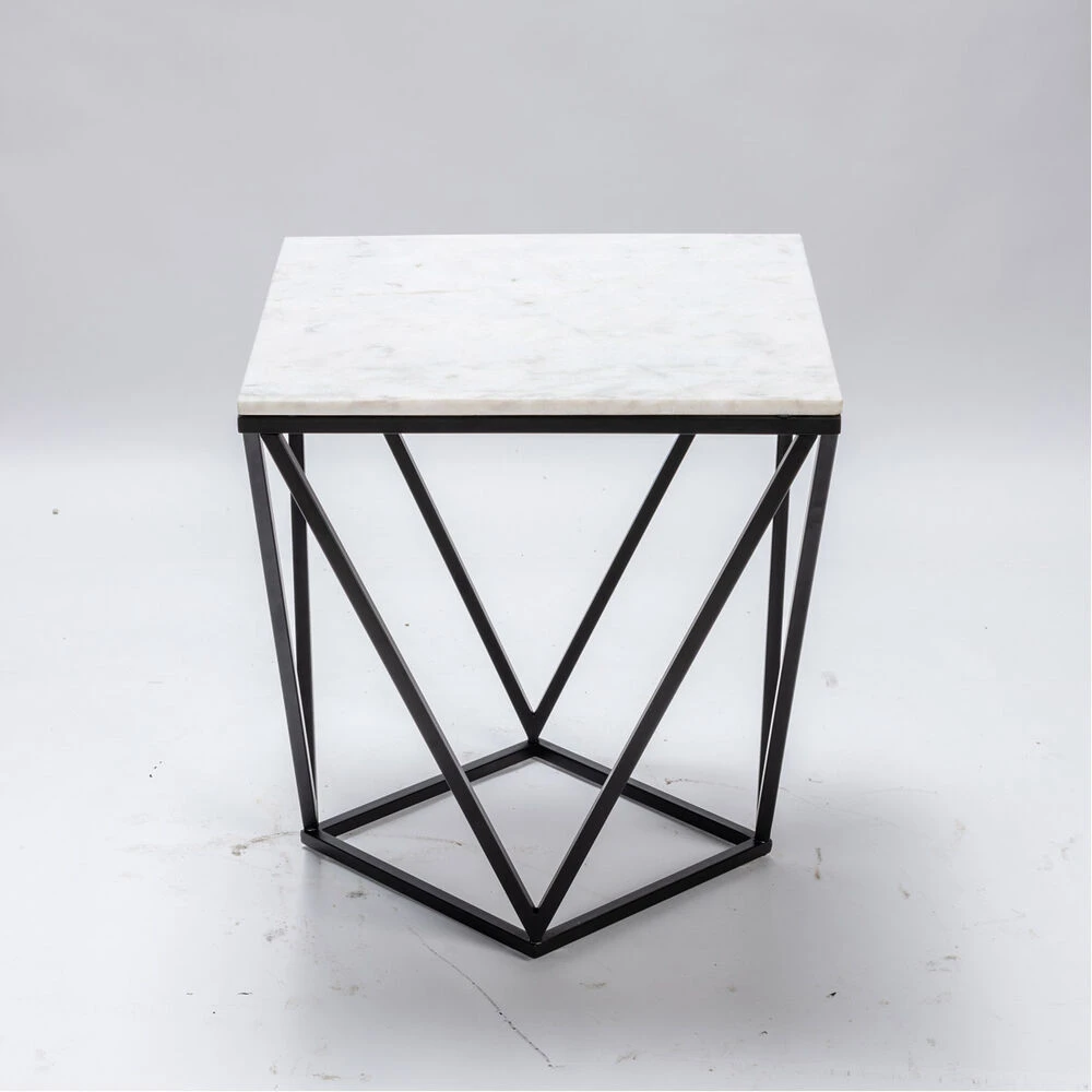 The White Marble End Table is 22 inches tall and features Black and White coloring with Metal Frame. The piece embodies a Contemporary theme.