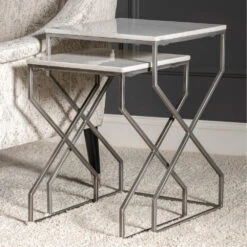 Evolution 23 X 16 Inch White And Silver Nested Tables, Set Of 2