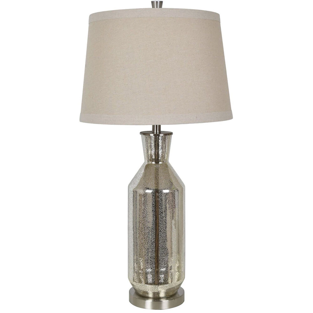 Jaden Table Lamp I 34″ Ht.,Glass&Metal Mercury Glass&Brushed Nickle Finish 15 x 17 x 12 Oatmeal Linen Shade