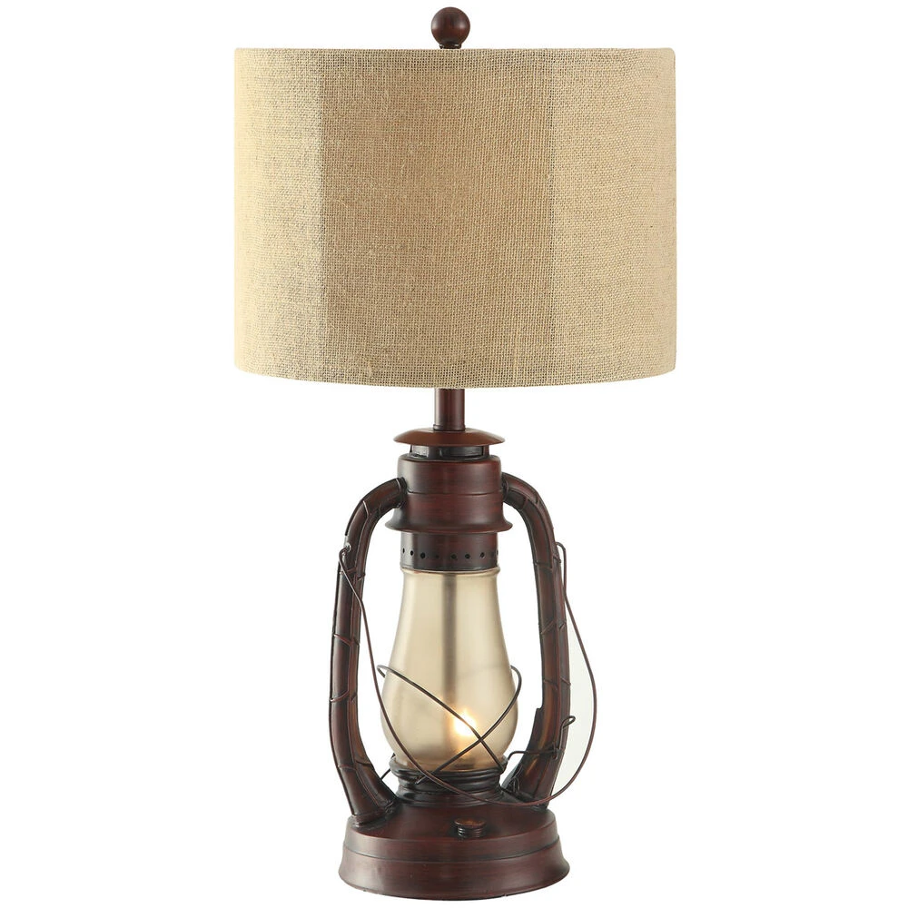 Lauren 28 Inch 150 Watt Rustic Red And Amber Table Lamp Portable Light, With Nightlight