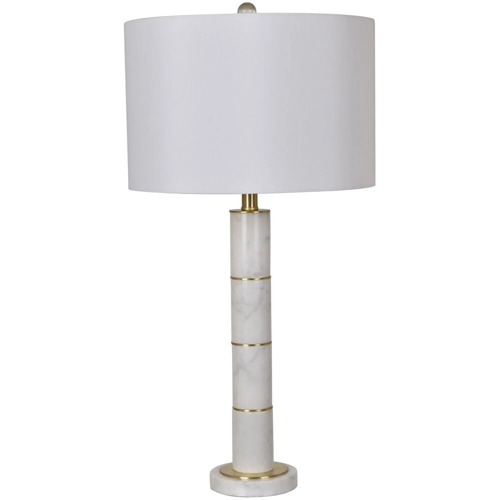 Marble Column Table Lamp30″ Ht., Marble & MetalWhite Marble & Brass Finish15 x 15 x 10 White Silk Shade