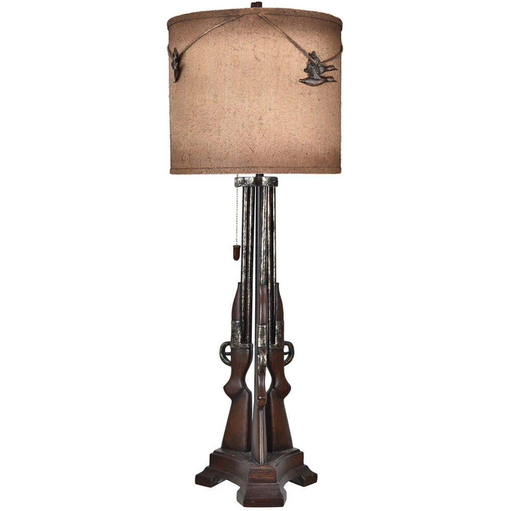 Shot Table Lamp 37.5″ Ht.,Resin Gunmetal Finish 13 x 13 x 11.5 Antique Burlap Shade