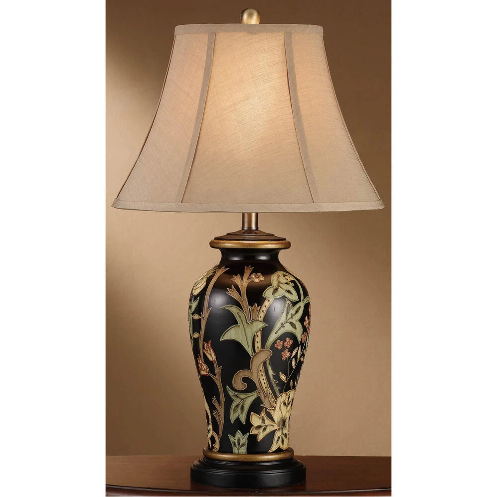 Windham Table Lamp 29″ Ht., Ceramic Green, Cinnamon and Black Floral Hand Painted Finish 9 x 17 x 12 Bell Shade Toasted
